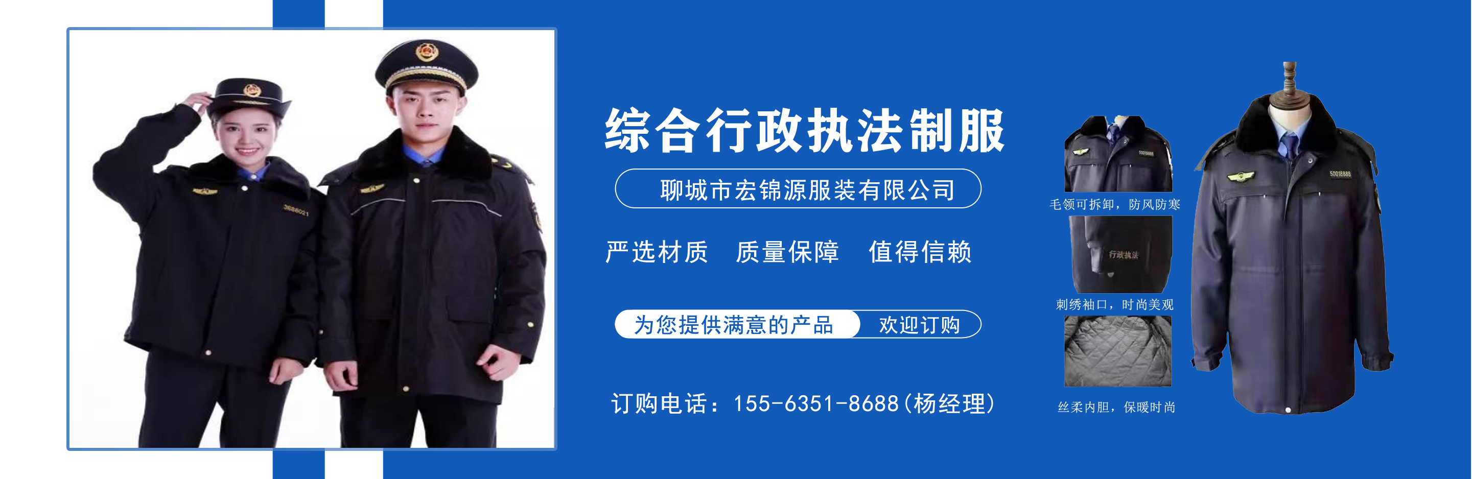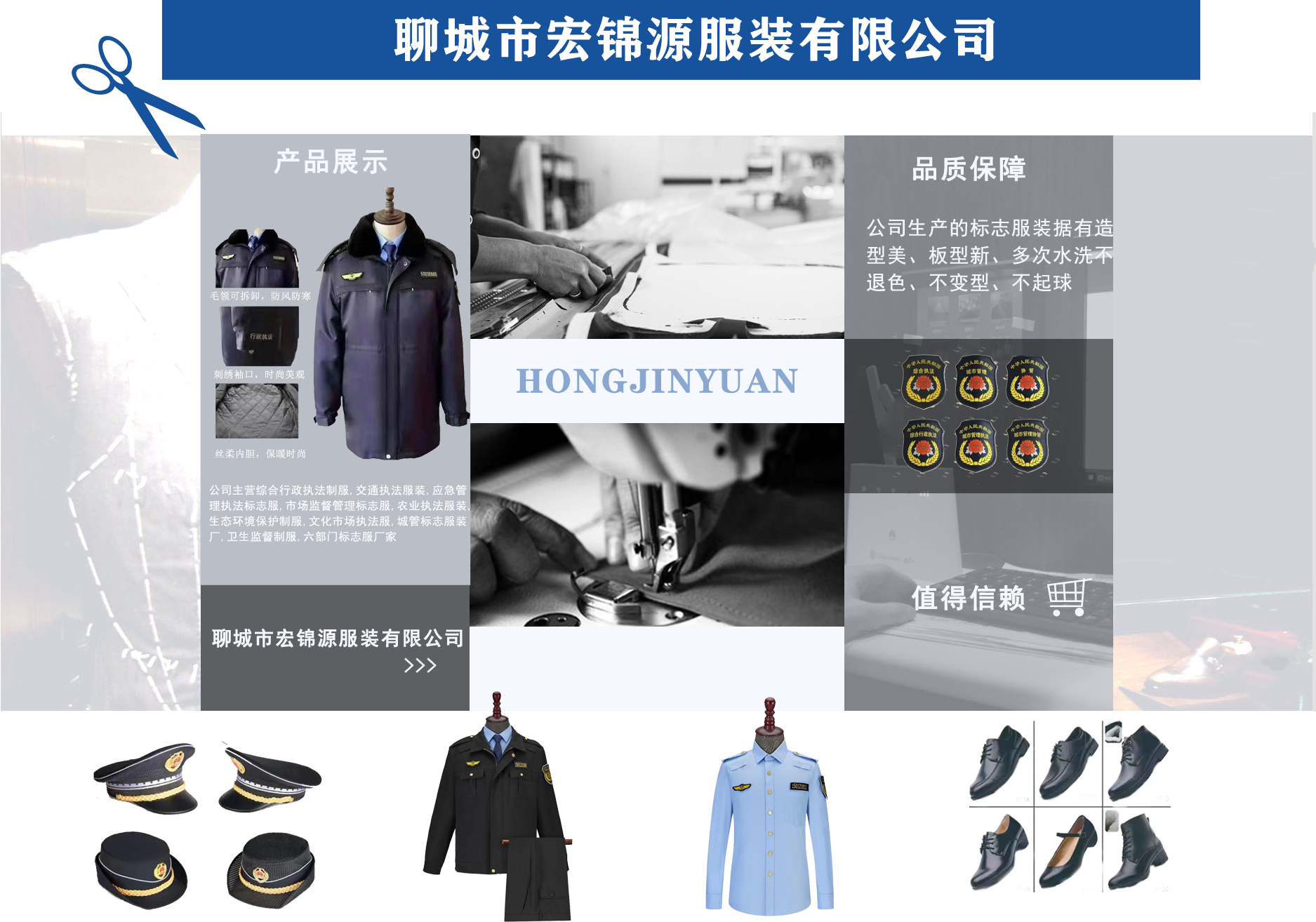 綜合行政執(zhí)法制服,交通執(zhí)法服裝,應急管理執(zhí)法標志服,市場監(jiān)督管理標志服,農(nóng)業(yè)執(zhí)法服裝,生態(tài)環(huán)境保護制服,文化市場執(zhí)法服,城管標志服裝廠,衛(wèi)生監(jiān)督制服,六部門標志服廠家-聊城市宏錦源服裝有限公司 公司簡介/ ABOUT